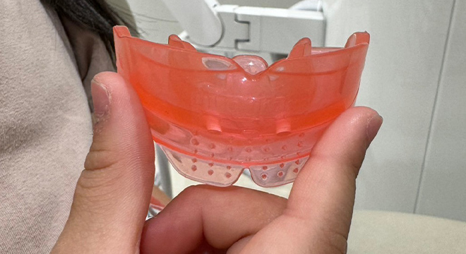 | 装置 | マウスピース型の装置で取り外しができ、平日1時間と就寝時に装着すればOK![]() |