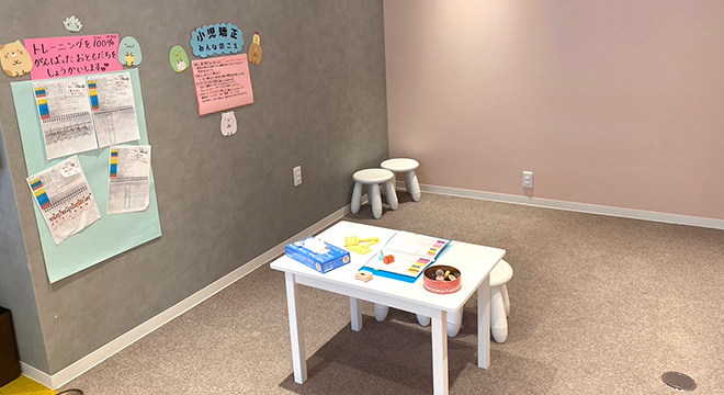 正しい呼吸や舌や唇、頬の筋力トレーニングを、まわりに気兼ねなく行えるように院内の専用アクティビティルームは個室です。
