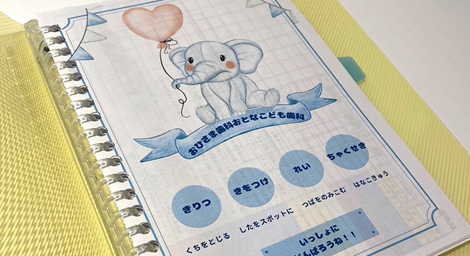 歯科医院でのトレーニングは専属スタッフと一緒に行いますが、大切なのは毎日のご自宅でのトレーニングです。お子さまができるのか、心配かもしれませんが大丈夫です。分かりやすいマニュアルがありますので、ご家族様がチェックして上げて下さい。